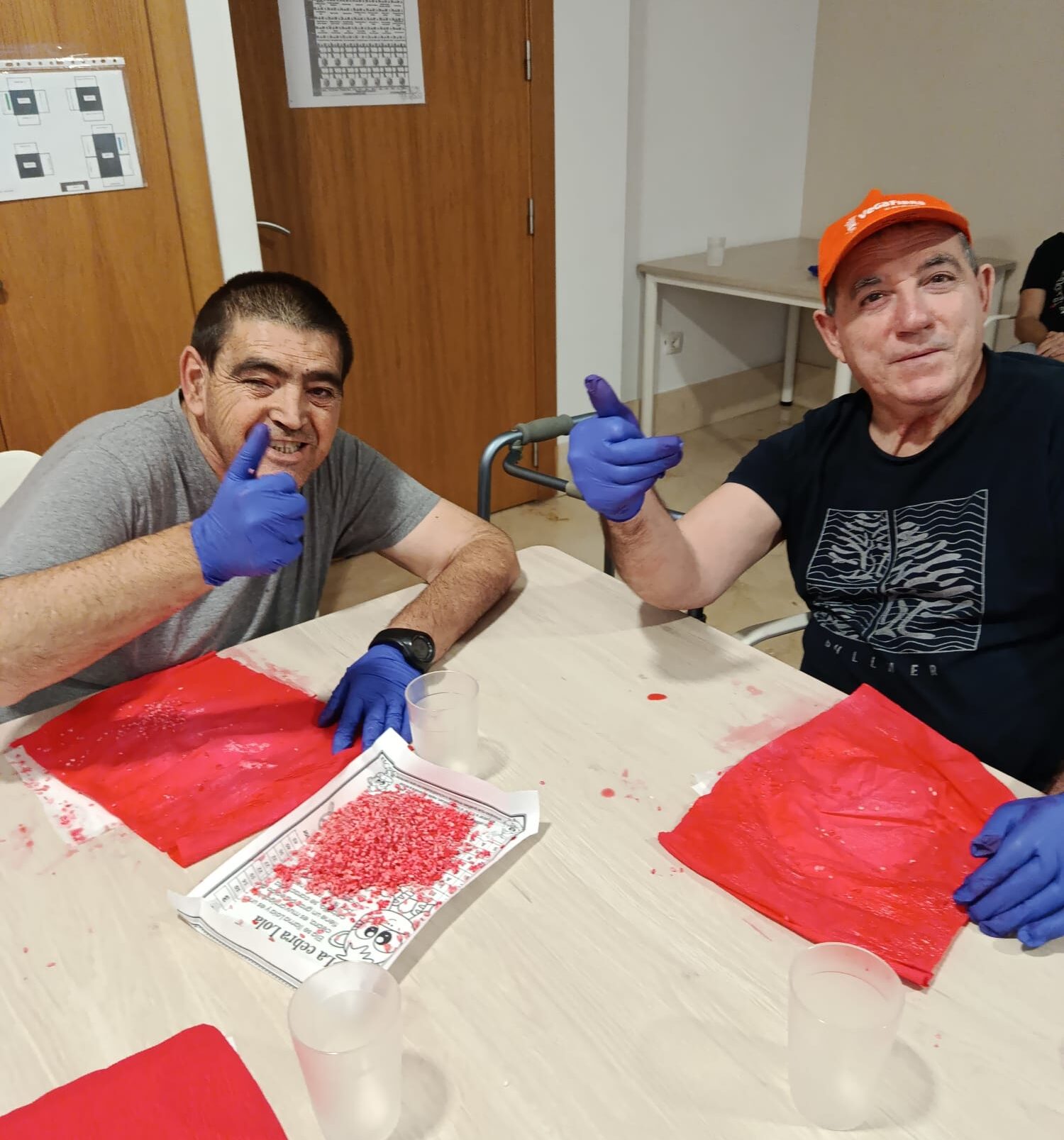 La preparación del arroz pintado se integró dentro de nuestras dinámicas terapéuticas, ya que este tipo de tareas contribuyen a trabajar la motricidad fina, la coordinación y la concentración, al tiempo que estimulan la creatividad y la autoestima. Actividades manuales como esta tienen un impacto muy positivo en el estado emocional de las personas mayores.